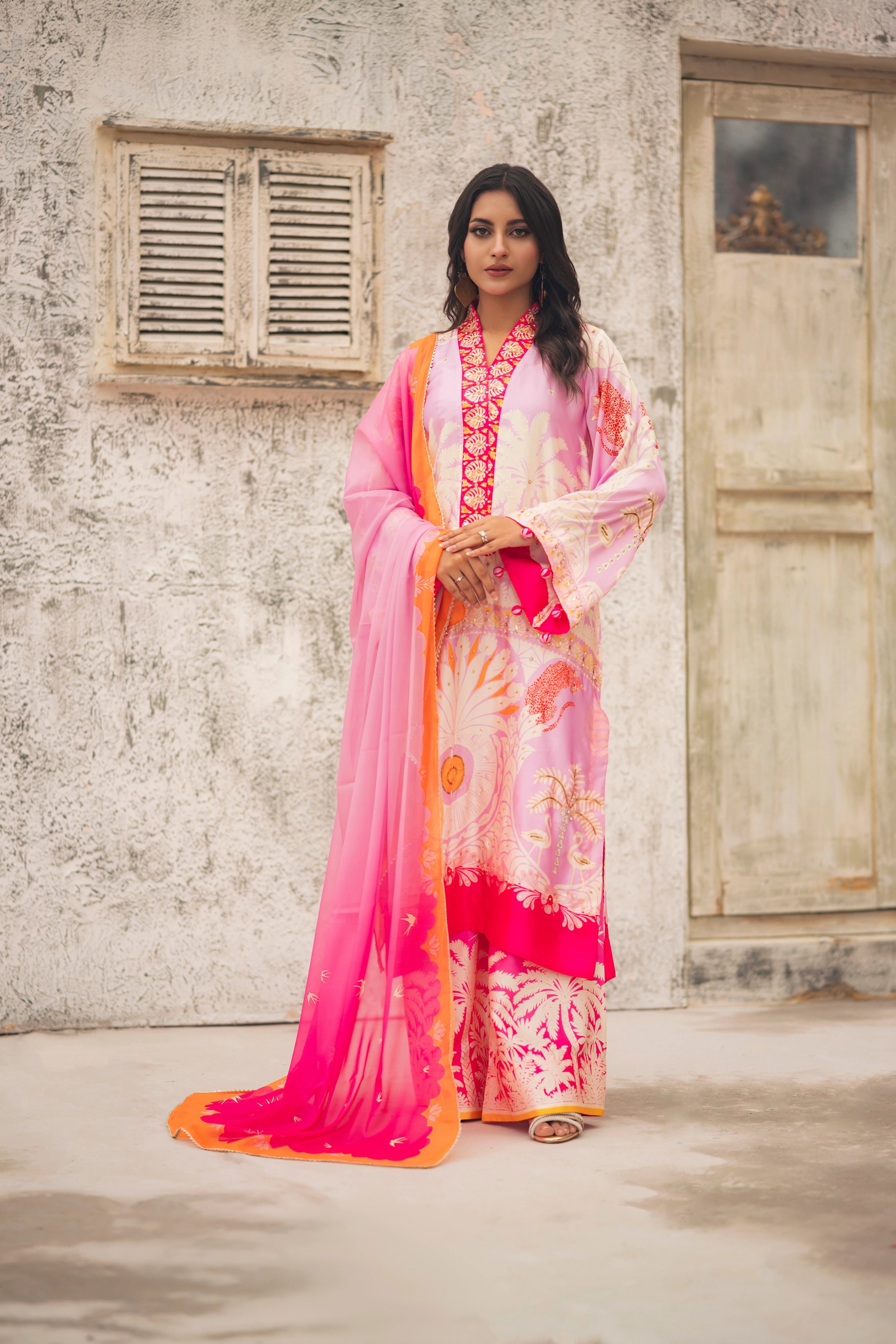 LIA - Festive Formal - VOL 2: A vision of effortless elegance, this digitally printed pink lavender shamooz...