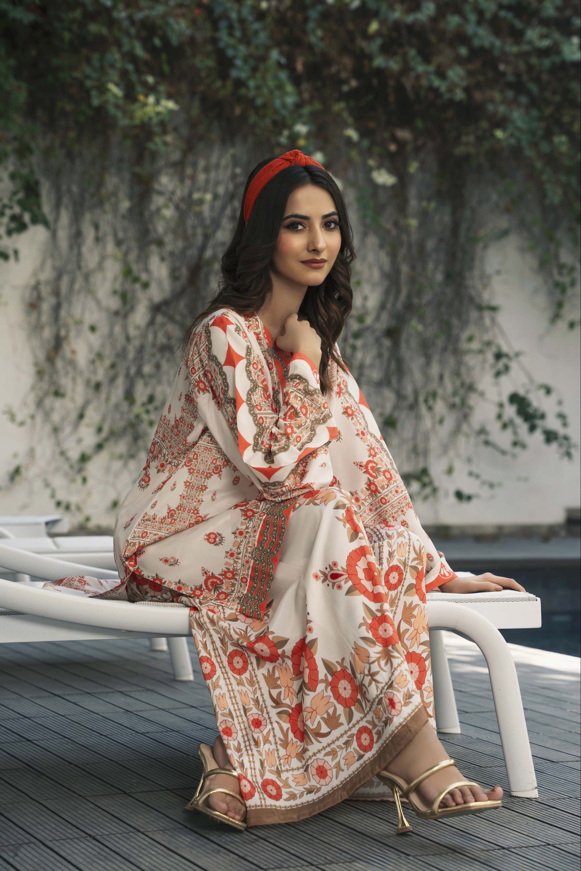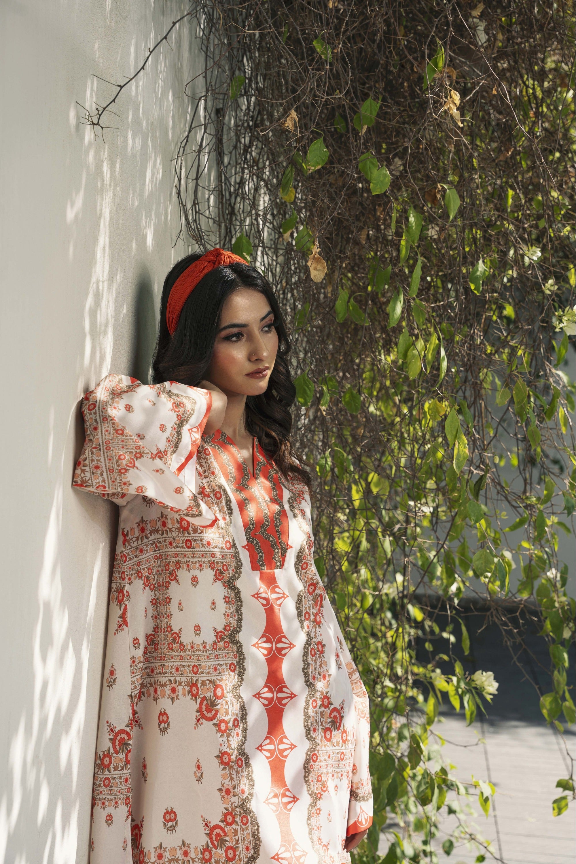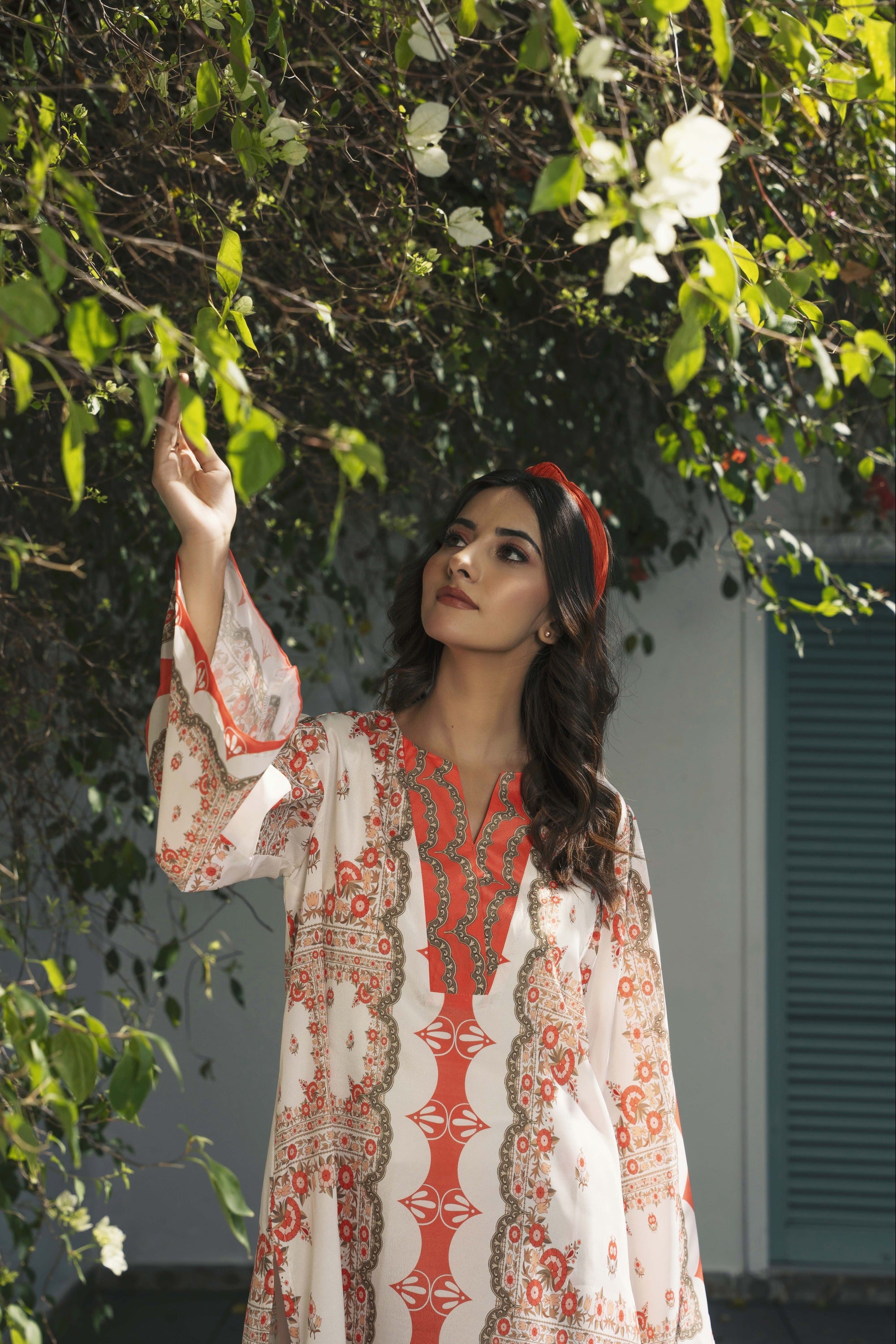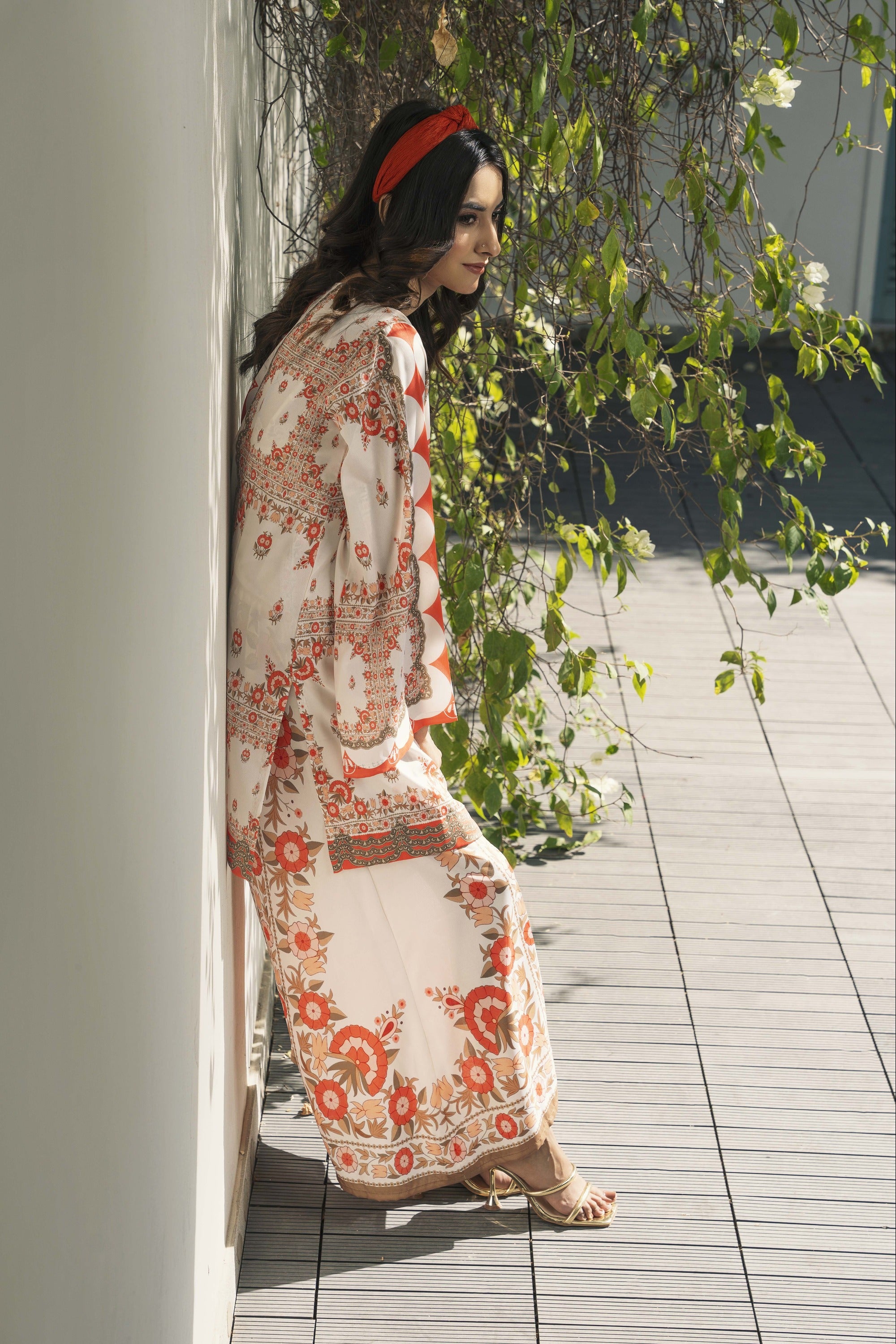 IRA - Luxury Printed Co-ords: Make a striking entrance in this short shirt with kurta sleeves paired with flared culottes, expertly crafted from crepe silk. This co-ord set’s earthy print is inspired by tribal floral, adds a touch of whimsical flair to the effortless silhouette. Style it for a sunny brunch with a blowout or polish it up for the night with a sleek ponytail.
