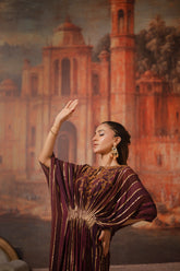 LIA - Festive Formal - VOL 3: Crafted from sheesha rawsilk, this candy floss hued kaftan is intricately adorned with sequins hand embroidery in gold and silver. The flowing silhouette features black appliquéd velvet accent neckline and sleeves hem, the V-shaped contrasting neckline and...- PKR 52,500