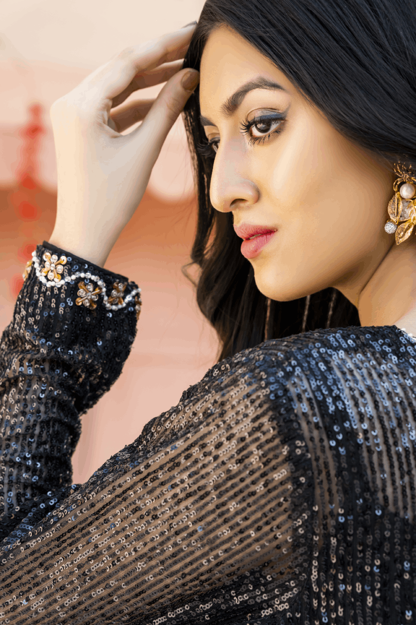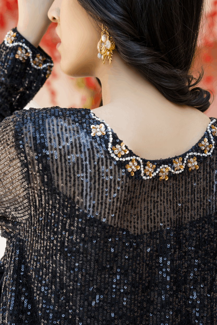 Black is my all-time favorite color and Bela has just made me fall in love with it all over again. The pearls and sequence embroidery adds more charm to it.