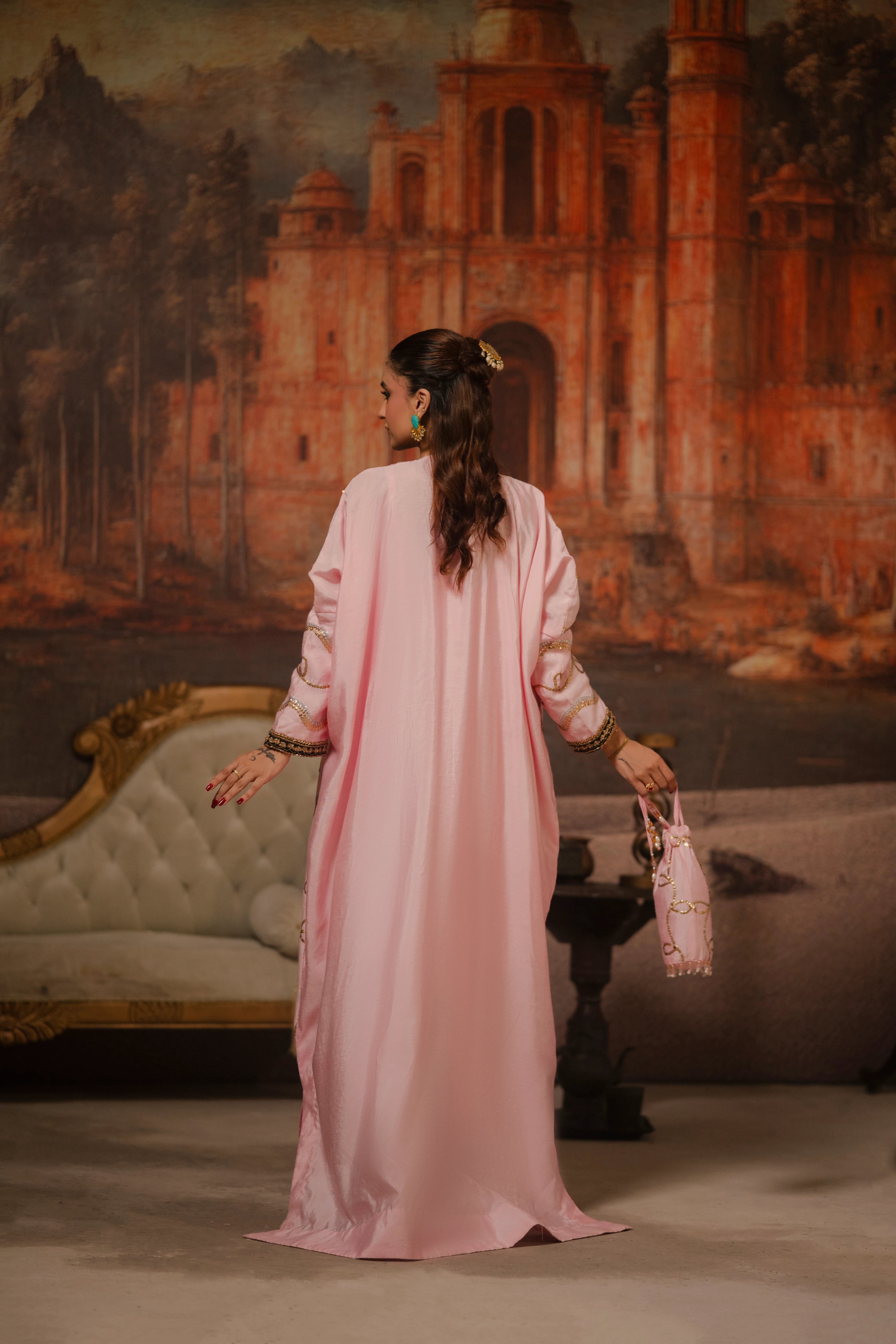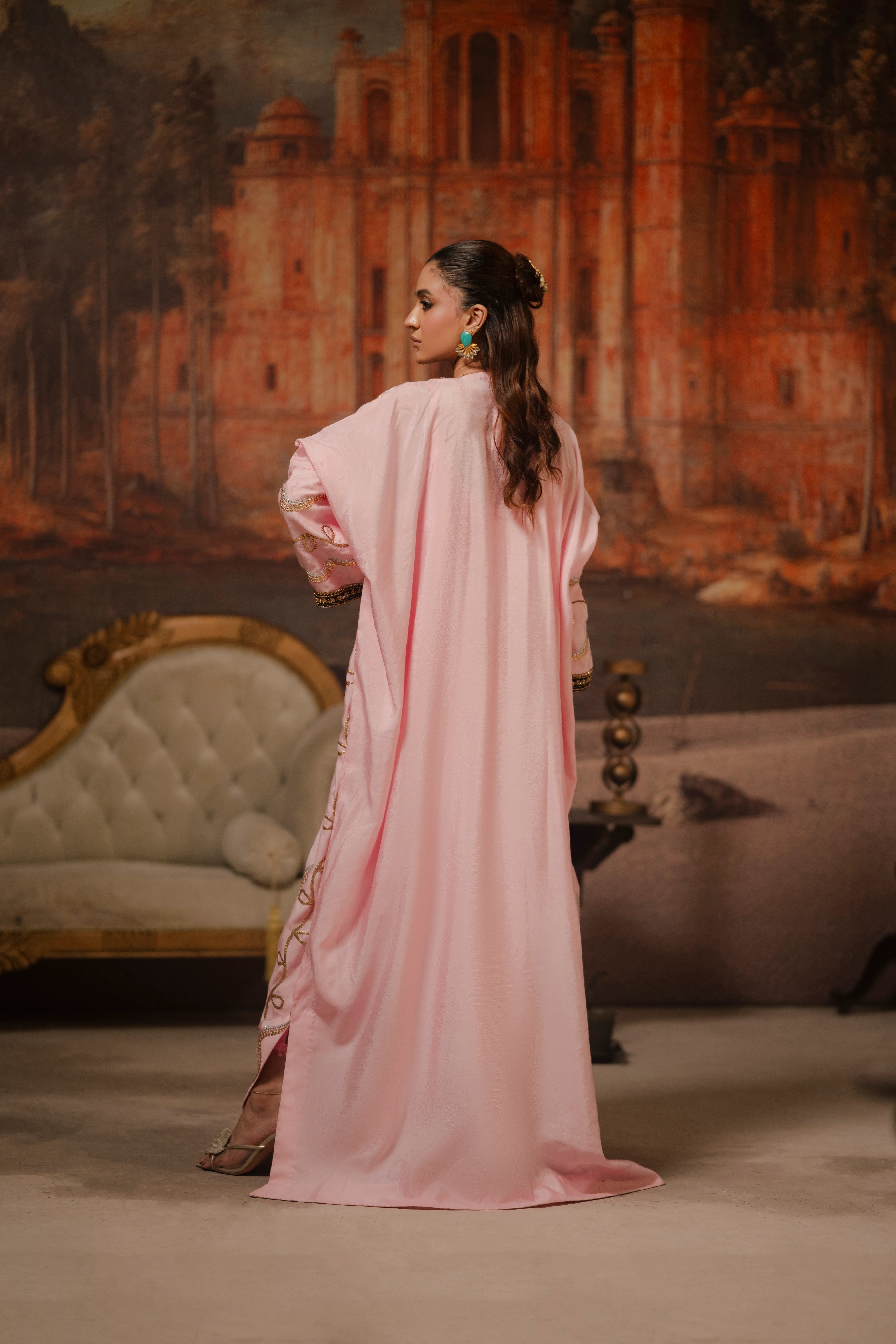 LIA - Festive Formal - VOL 3: Crafted from sheesha rawsilk, this candy floss hued kaftan is...